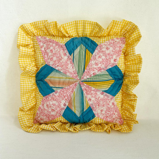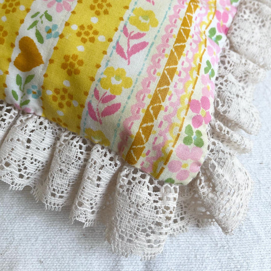 Small Yellow + Pink Lace-edged Pillow