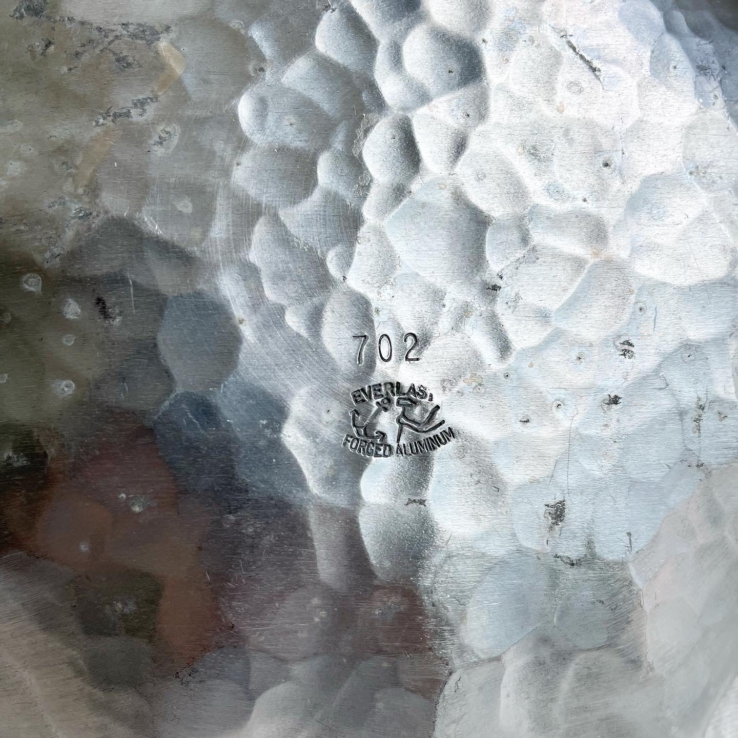 In 1932, Schnitzer and Gelfman formed Everlast Metal Products Corporation + began producing high-quality, hand-forged aluminum giftware. Hammered aluminum giftware products were, at once, both “old” + “new.” In an era of growing uniformity via factory production, the “made by hand” aspect of these products held an aesthetic appeal for consumers, while their aluminum material made them seem decidedly modern.