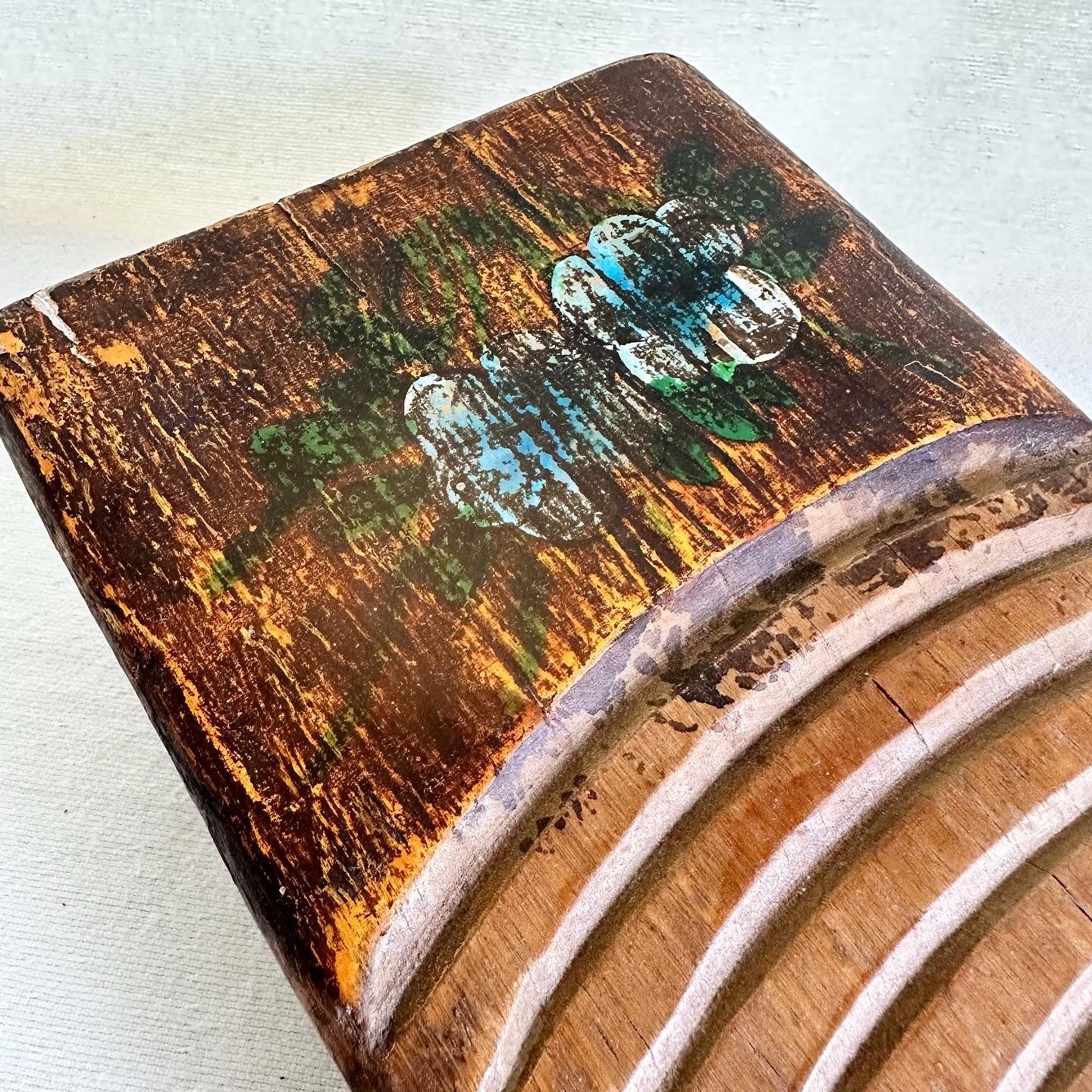 Antique wooden washboard w painted ends. 6 1/4” x 18 1/2”.