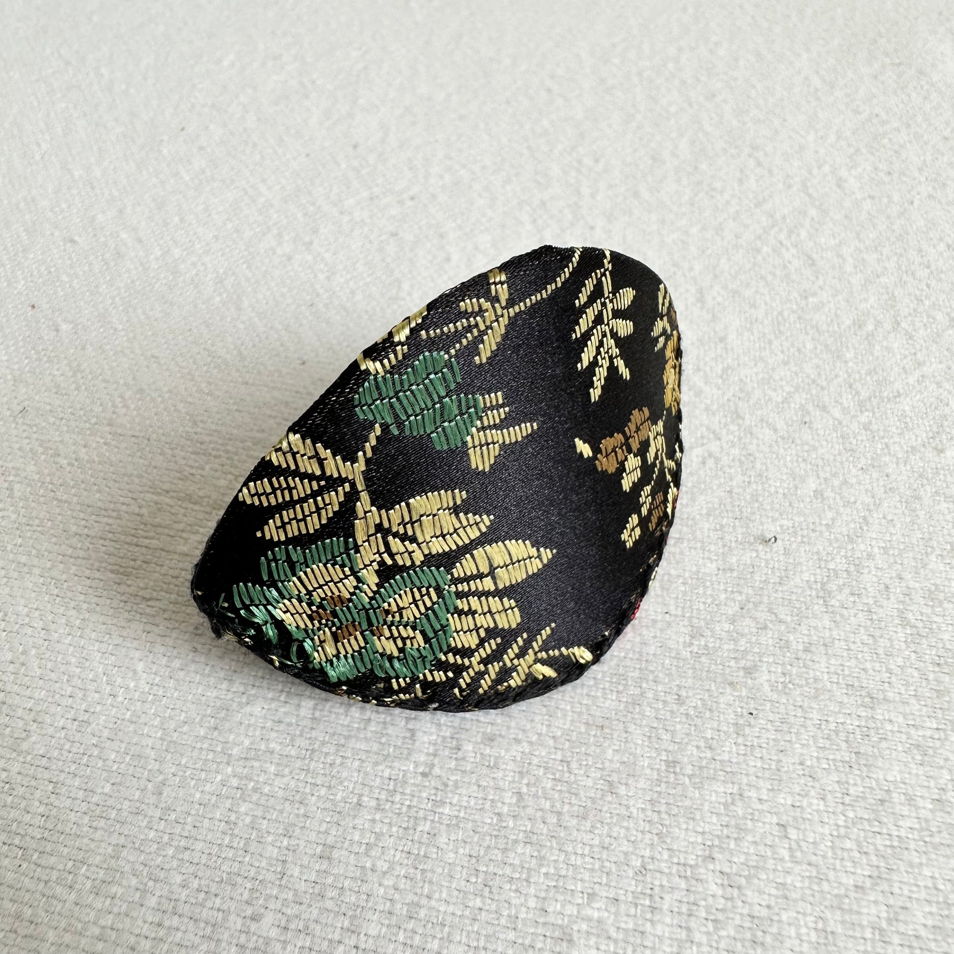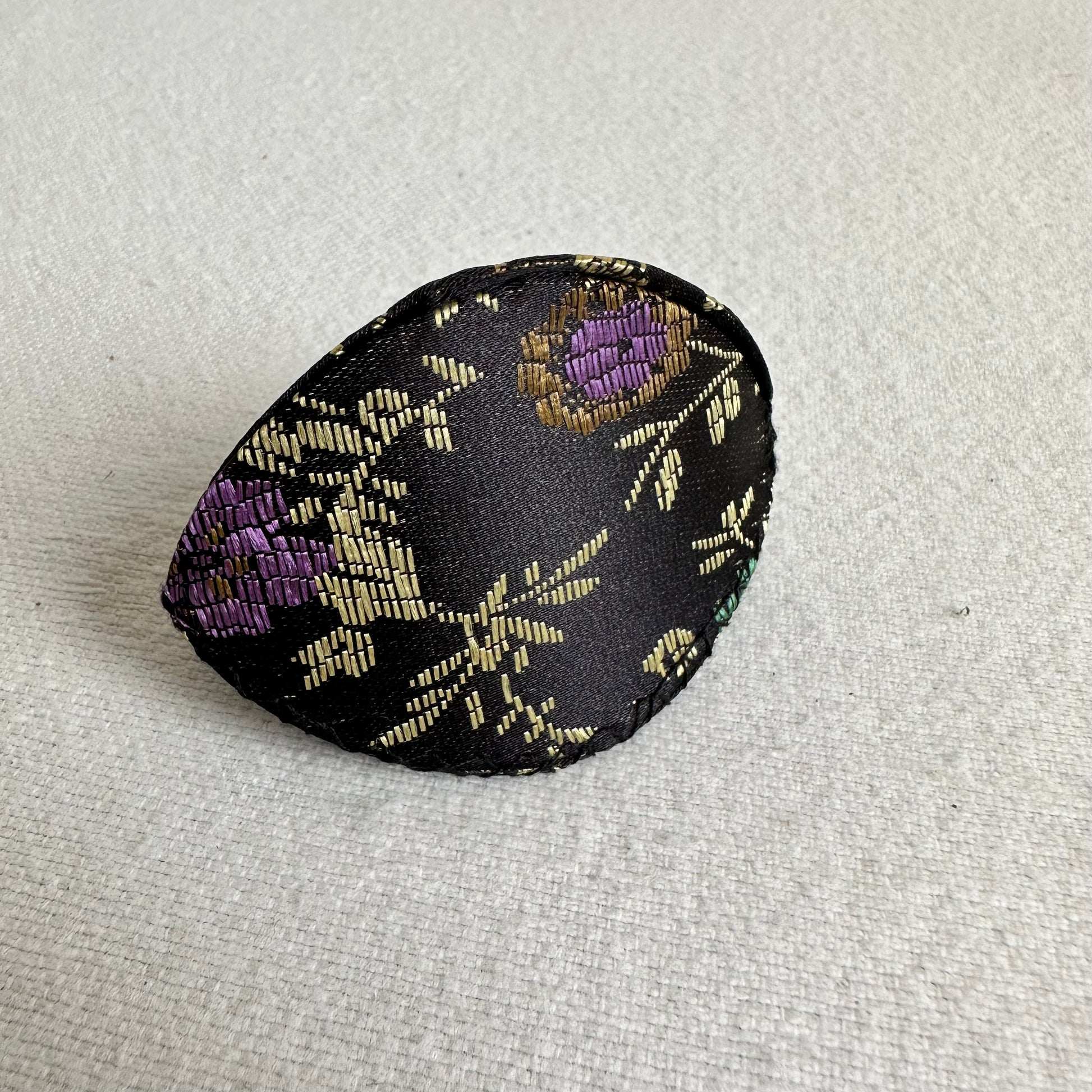 Cute lil’ black coin purse that snaps open + shut. Sides are purple, green + red. Would also be great for medicine on-the-go. 2 5/8”L. Each side is 1 3/4”W.