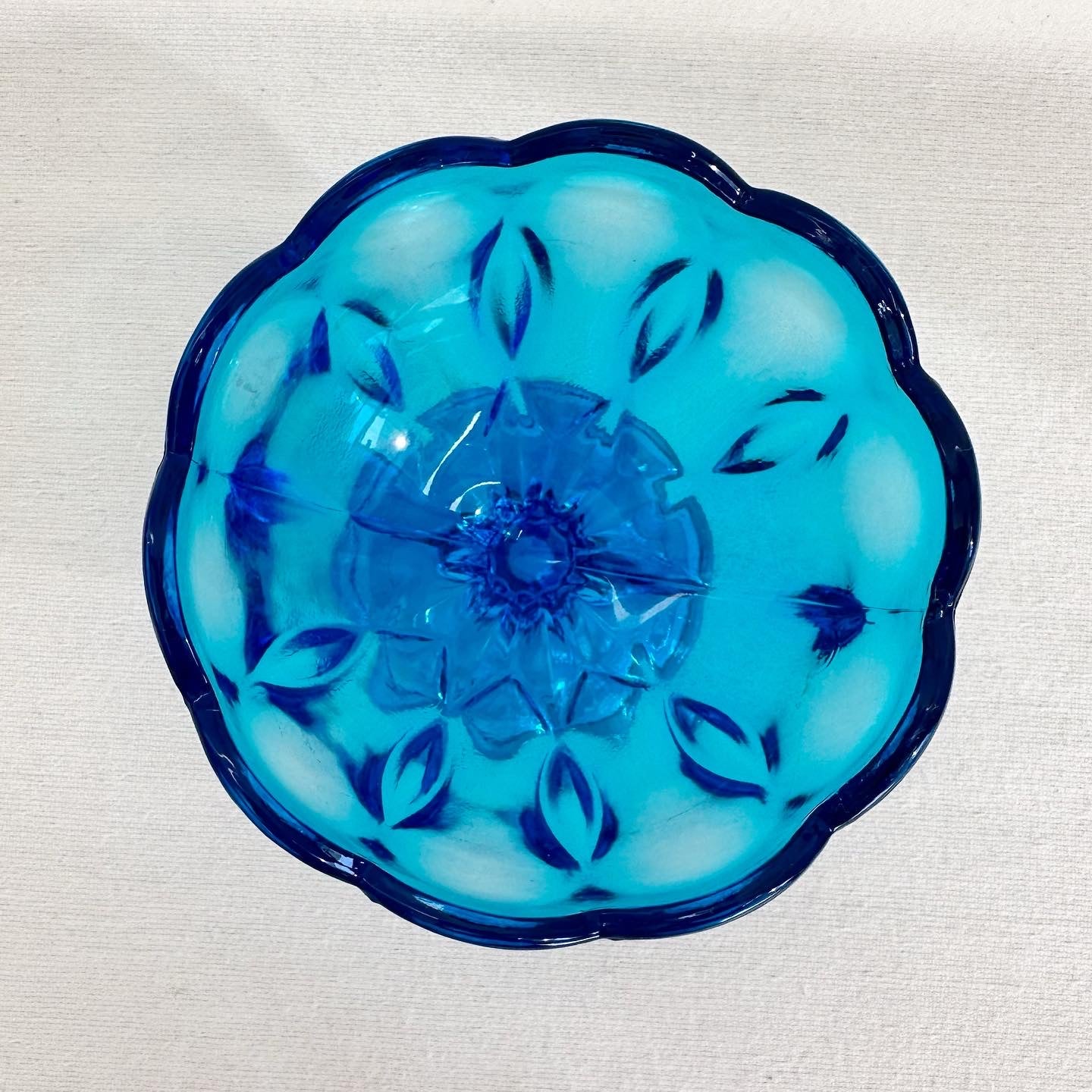 Blue pedestal glassware. Most likely a sherbet or ice cream dish from a set of four. Useful for any purpose: candy, change, jewelry, keys, etc.