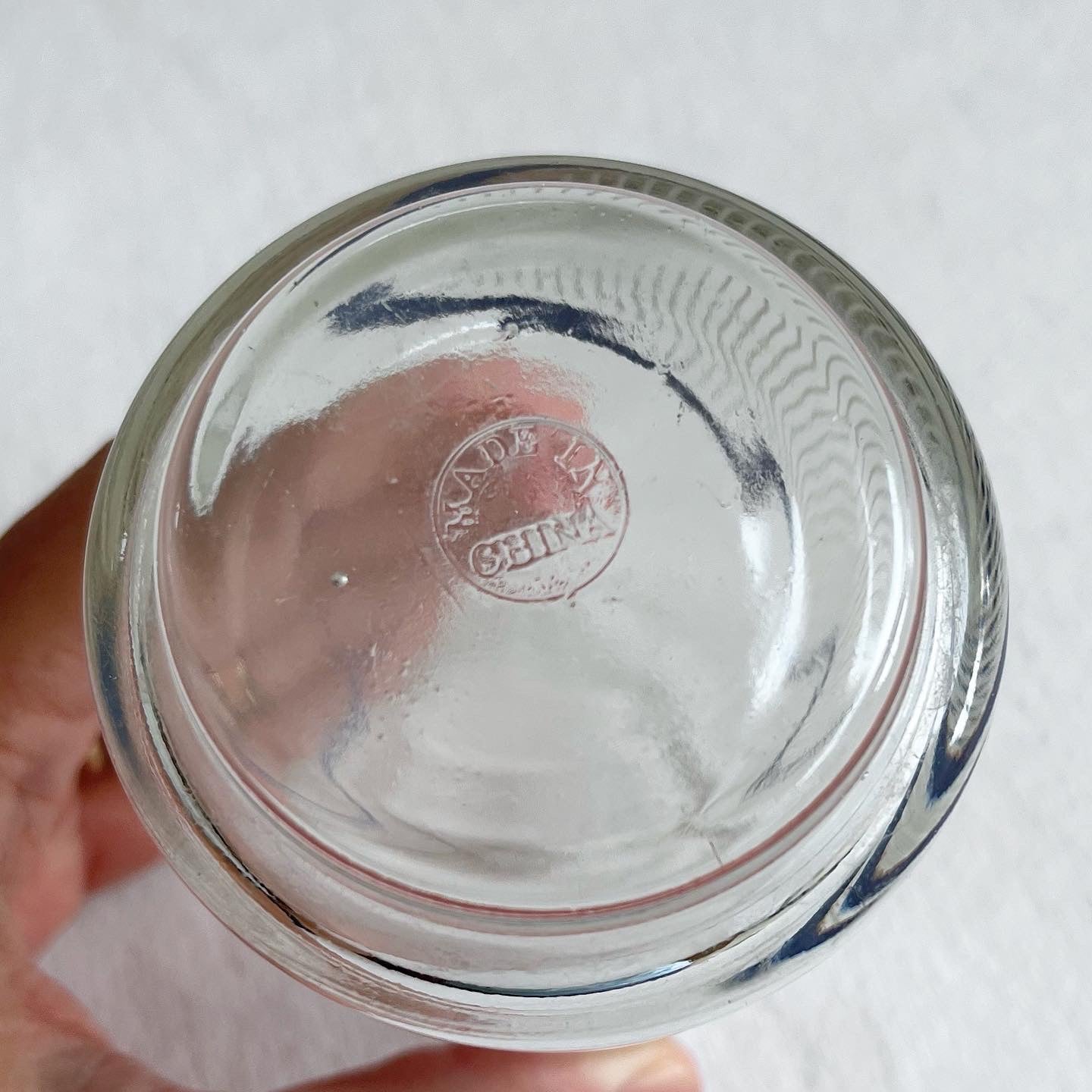 3 drinking glasses w a fun 80s/90s design in blue + white. Made in China.