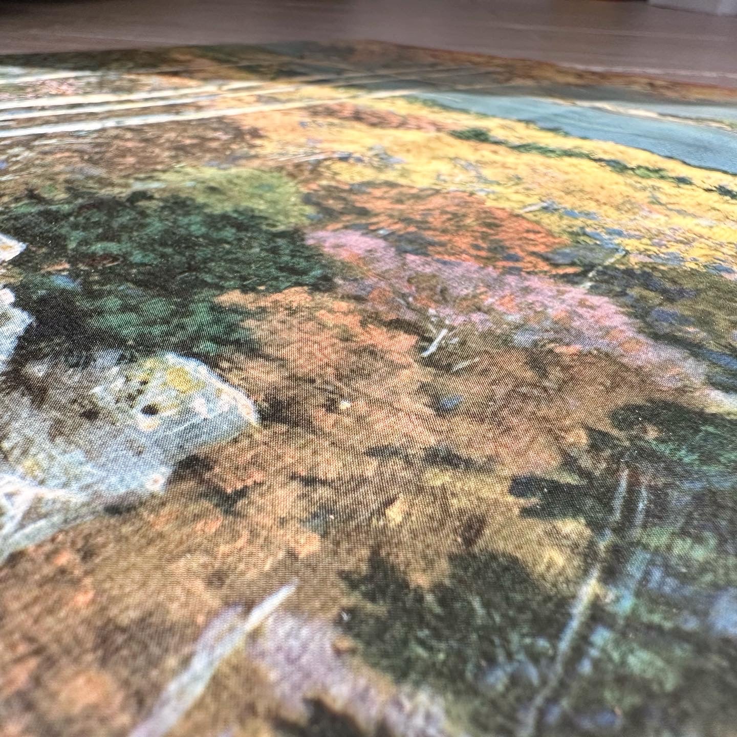 Landscape print of an Edward V. Brewer painting. He is famously known for his Cream of Wheat ads in the early 20th c. In the 1930’s he persuaded the Northern Pacific Railroad to pay for transportation + lodging for his family in exchange for painting scenes along the way. Possibly a print from a calendar.