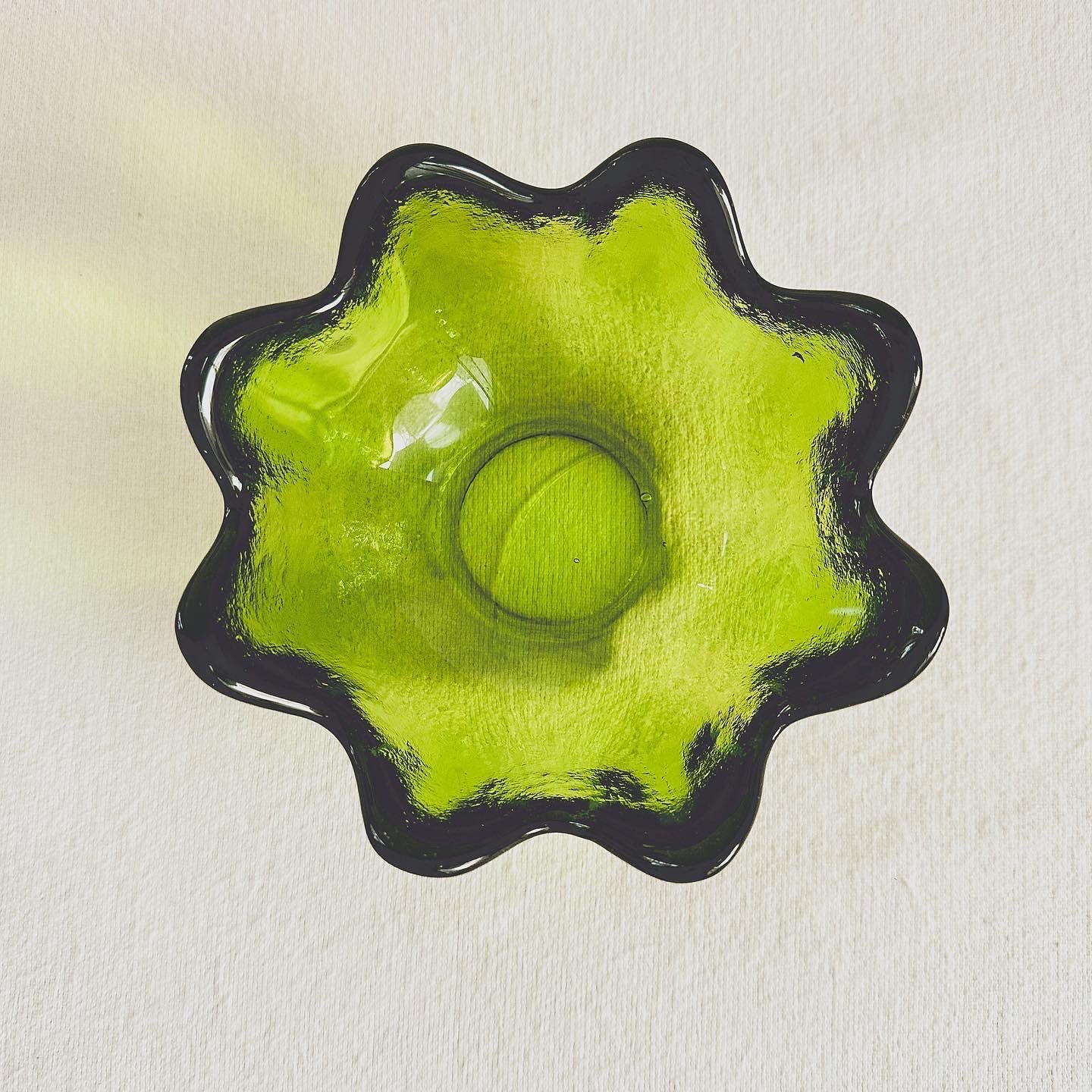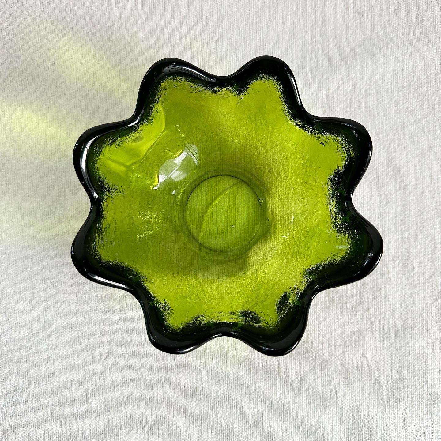 Blenko Glass Olive Green Lotus Flower Bowl. Item no. 6143-S. Beautiful condition. No chips or cracks.
